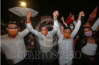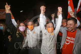 GUADALAJARA, JALISCO, 06JUNIO2021.- Pablo Lemus y Juan José Frangie candidatos por las alcaldías de Guadalajara y Zapopan respectivamente se reunieron con simpatizantes en la Glorieta de la Minerva para celebrar el triunfo de las elecciones 2021 en Guadalajara. FOTO: FERNANDO CARRANZA GARCIA / CUARTOSCURO.COM