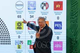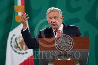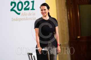 CIUDAD DE MÉXICO, 07JUNIO2021.- Andrés Manuel López Obrador, Presidente de México, y Surit Berenice Romero Domínguez, subprocuradora de Servicios y encargada de despacho de la Procuraduría Federal del Consumidor (Profeco), durante la conferencia matutina en Palacio Nacional. El Ejecutivo felicitó a la ciudadanía por las elecciones del día de ayer. FOTO: MOISÉS PABLO/CUARTOSCURO.COM