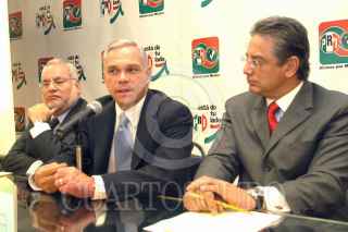 MÉXICO, D.F., 06SEPTIEMBRE2006.- En la sala de prensa del PRI Nacional, conferencia de Carlos Jiménez, José Aguilar Bodegas, Carlos Flores Rico, David Penchina y Cesar Augusto Santiago para anunciar que el CEN del PRI promovera una acción jurídica, civil y penal contra las autoridades del IFE en Chiapas y del gobernador Pablo Salazar Mendicuchía por la pasada elección de estado. FOTO: FRANCISCO MARTÍNEZ/CUARTOSCURO