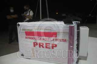 CIUDAD JUÁREZ, CHIHUAHUA, 07JUNIO2021.- Alrededor de las 22:34 horas arribó a la Asamblea Municipal Juárez el primer paquete electoral, correspondiente al distrito 04. FOTO: NACHO RUIZ/CUARTOSCURO.COM