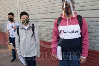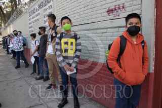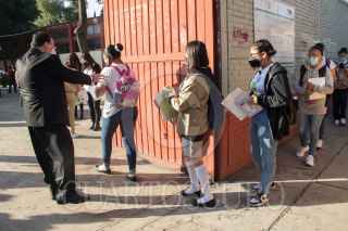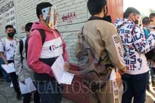 CIUDAD DE MÉXICO. 07JUNIO2021.- Con o sin uniforme, con suficiente protección o no, colo con permiso firmado por el padre o tutor; alrededor de 200 adolescentes de la Escuela Secundaria Técnica 30 Ing . Alejandro Guillot, en la colonia San Felipe de Jesús de la alcaldía Gustavo A. Madero, regresaron este día a las aulas. FOTO: VICTORIA VALTIERRA/CUARTOSCURO.COM