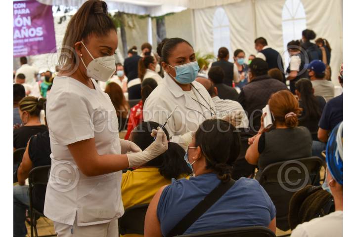 METEPEC, ESTADO DE MÉXICO, 07JUNIO2021.- Inició este lunes la vacuna contra COVID-19 para personas de 40 a 49 años de edad en los municipios de Metepec, Huixquilucan y Zinacantepec; desde temprana hora comenzaron a llegar las personas a los centros de vacunación. FOTO: CRISANTA ESPINOSA AGUILAR /CUARTOSCURO.CON