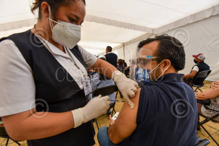 METEPEC, ESTADO DE MÉXICO, 07JUNIO2021.- Inició este lunes la vacuna contra COVID-19 para personas de 40 a 49 años de edad en los municipios de Metepec, Huixquilucan y Zinacantepec; desde temprana hora comenzaron a llegar las personas a los centros de vacunación. FOTO: CRISANTA ESPINOSA AGUILAR /CUARTOSCURO.CON