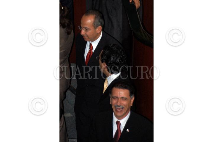 MÉXICO D.F. 06SEPTIMBRE.- Luís Carlos Hugalde, consejero presidente del IFE, Mariano Azuela, presidente de la suprema Corte de Justicia y Carlos Abascal, secretario de gobierno, durante la entrega de constancia de mayoría a Felipe Calderón, que lo avala como presidente de la república a en del Tribunal Federal Electoral. FOTO: GUILLERMO PEREA: CUARTOSCURO.COM