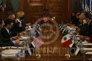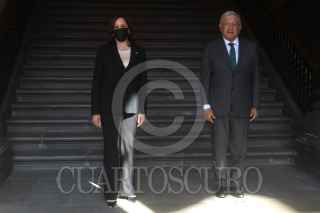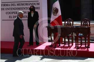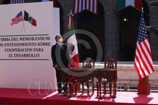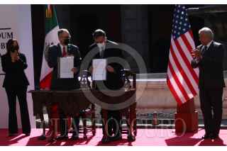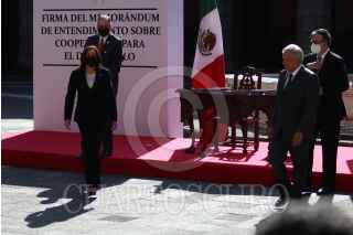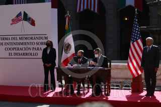 CIUDAD DE MÉXICO, 08JUNIO2021.- John S. Creamer, encargado de Negocios A.I. de los Estados Unidos de América, y Marcelo Ebrard, secretario de Relaciones Exteriores, firmaron el Memorándum de entendimiento sobre Cooperación para desarrollo entre México y Estados y Unidos. En el acto estuvieron presentes Kamala Harrison, vicepresidenta de los Estados Unidos de América, y Andrés Manuel López Obrador, presidente Constitucional de los Estados Unidos Mexicanos, el cual se realizó en el Patio Central de Palacio Nacional. FOTO: GRACIELA LÓPEZ /CUARTOSCURO.COM