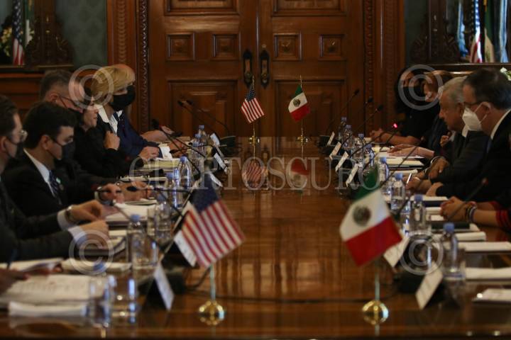 CIUDAD DE MÉXICO, 08JUNIO2021.- John S. Creamer, encargado de Negocios A.I. de los Estados Unidos de América, y Marcelo Ebrard, secretario de Relaciones Exteriores, firmaron el Memorándum de entendimiento sobre Cooperación para desarrollo entre México y Estados y Unidos. En el acto estuvieron presentes Kamala Harrison, vicepresidenta de los Estados Unidos de América, y Andrés Manuel López Obrador, presidente Constitucional de los Estados Unidos Mexicanos, el cual se realizó en el Patio Central de Palacio Nacional. FOTO: GRACIELA LÓPEZ /CUARTOSCURO.COM
