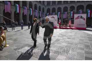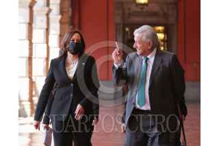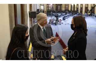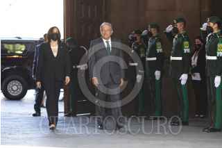 CIUDAD DE MÉXICO. 08JUNIO2021.- Andrés Manuel López Obrador, Presidente de México y Kamala Harris, vicepresidenta de los Estados Unidos de América, durante su reunión de trabajo en Palacio Nacional. FOTO: PRESIDENCIA/CUARTOSCURO.COM