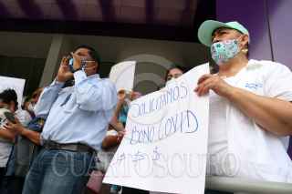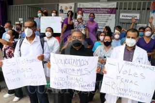 CUERNAVACA, MORELOS, 08JUNIO2021.- Personal administrativo del hospital José G. Parres realizo una huelga de brazos caídos después del medio día. En las unidades médicas de todo el estado el paro se realizó, impulsado por el sindicato de trabajadores médicos administrativos. Demandan el pago del bono COVID, uniformes, material para realizar su labor e incremento salarial. FOTO: MARGARITO PÉREZ RETANA /CUARTOSCURO.COM