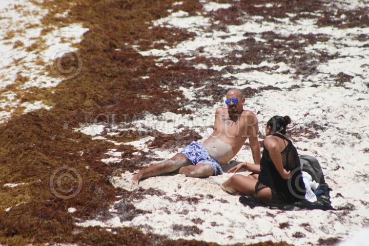 CANCÚN, QUINTANA ROO, 08JUNIO2021.- Gran cantidad de sargazo se observa en la la Playa Gaviota Azul, turistas conviven con esta macroalga durante su estancia a las orillas del mar. FOTO: ELIZABETH RUIZ/CUARTOSCURO.COM