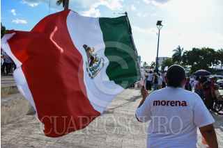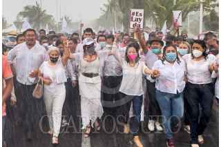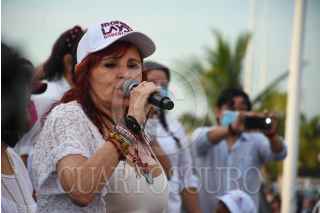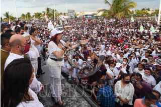CAMPECHE, CAMPECHE, 07JUNIO2021.- Layda Sansores San Román, quien hasta el momento aventaja en el conteo de las votaciones a la gubernatura de Campeche, realizo una marcha llamada “la marcha de la victoria”, para después realizar un mitin ante sus simpatizantes en el malecón de la capital. Antes la marcha se vio interrumpida por la fuerte lluvia que cayó en la ciudad, pero a pesar de ello se continuo con lo programado. FOTO: MICHAEL BALAM/CUARTOSCURO.COM