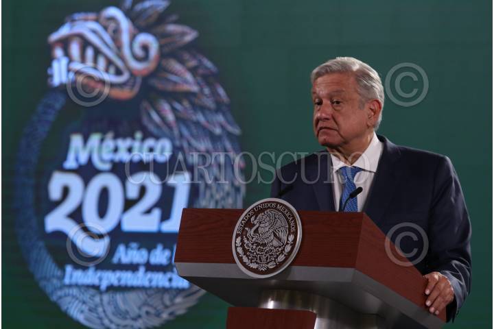 CIUDAD DE MÉXICO, 08JUNIO2021.- Andrés Manuel López Obrador, presidente de México acompañado de Marcelo Ebrard Casaubon, secretario de Relaciones Exteriores; Jean-Pierre Asvazadourian, embajador de Francia; Greeme C. Clark, embajador de Canadá; Rogelio Jiménez Pons, director general del Fondo Nacional de Fomento al Turismo (Fonatur); María Teresita Ramos Gómez, directora general en Méxicodel Alstom Transport; Sandra Palacios Ríos, directora comercial de Bombardier y Transportation; Thierry Best, director comercial de Alstom Transport, durante conferencia de prensa matutina en Palacio Nacional donde se realizó firma de convenio para la compra de convoyes para la construcción del Tren Maya. FOTO: ANDREA MURCIA /CUARTOSCURO.COM