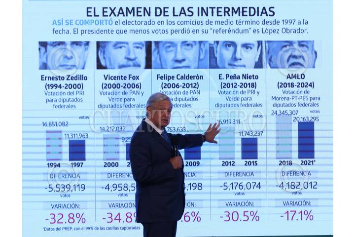 CIUDAD DE MÉXICO, 08JUNIO2021.- Andrés Manuel López Obrador, presidente de México acompañado de Marcelo Ebrard Casaubon, secretario de Relaciones Exteriores; Jean-Pierre Asvazadourian, embajador de Francia; Greeme C. Clark, embajador de Canadá; Rogelio Jiménez Pons, director general del Fondo Nacional de Fomento al Turismo (Fonatur); María Teresita Ramos Gómez, directora general en Méxicodel Alstom Transport; Sandra Palacios Ríos, directora comercial de Bombardier y Transportation; Thierry Best, director comercial de Alstom Transport, durante conferencia de prensa matutina en Palacio Nacional donde se realizó firma de convenio para la compra de convoyes para la construcción del Tren Maya. FOTO: ANDREA MURCIA /CUARTOSCURO.COM