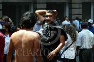 CUERNAVACA, MORELOS, 09JUNIO2021.- Durante un bloqueo que realizaron maestros jubilados en el centro de la capital, un par de hombres en estado de ebriedad tuvieron un pequeño altercado sin trascendencia, mientras, a la derecha, una mariposa juguetona se posa sobre la cabeza de un docente. FOTO: MARGARITO PÉREZ RETANA /CUARTOSCURO.COM