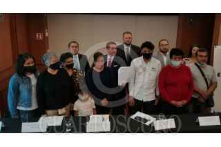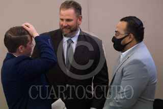 CIUDAD DE MÉXICO, 09JUNIO2021.- Cristopher Estupiñan, abogado de Carbino Legal; Jason Webster, integrante de la firma "The Webster Law Firm"; Bernarda Salgado López, quien perdió a una hija en la tragedia de la Línea 12, mientras que su otra hija Tanya, de 15 años, se encuentra aún recuperándose las graves heridas que sufrió en el accidente del 3 de mayo, y varios familiares de personas que resultaron heridos en estos hechos, ofrecieron una conferencia de prensa. Anunciaron que demandarán a las empresas responsables de la construcción en tribunales de Estados Unidos, planeación y mantenimiento de la llamada Línea Dorada, en tribunales de Estados Unidos. Las empresas involucradas se encuentran Alstom, ICA y Grupo Carso, y señalaron que su intención es pedir la reparación económica de daños para las víctimas. FOTO: MOISÉS PABLO/CUARTOSCURO.COM