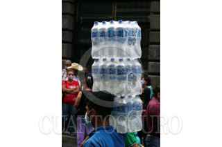 CUERNAVACA, MORELOS, 09JUNIO2021.- Un joven que trabaja de repartidor de agua embotellada carga sobre su hombro 36 botellas de litro y medio, dando como total 54 litros. Es parte de su labor diaria. FOTO: MARGARITO PÉREZ RETANA /CUARTOSCURO.COM