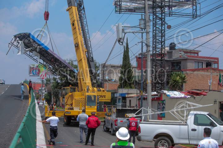 TOLUCA, ESTADO DE MÉXICO, 09JUNIO2021.- Debido a la fuerte lluvia que se registró la noche de este martes un espectacular colapso en Paseo Tollocan, en la delegación Seminario Segunda Sección, la zona fue acordonada por personal de Protección Civil para evitar cualquier riesgo mientras se realizan los trabajos de retiro. FOTO: CRISANTA ESPINOSA AGUILAR /CUARTOSCURO.COM