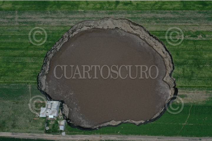 SANTA MARÍA ZACATEPEC, PUEBLA, 09JUNIO2021.- A 11 días del surgimiento del socavón en la entidad poblana, elementos de protección civil, Sedena y policía estatal resguardan la zona del derrumbe a fin de evitar accidentes. Hasta el momento, el hundimiento registras 126 metros de diámetro en su parte superior y 114 en la parte inferior, así como 20 metros de profundidad. Los dos perros que cayeron en el interior permanecen ahí en espera de que se efectúen operativo de rescate. FOTO: GALO CAÑAS/CUARTOSCURO.COM
