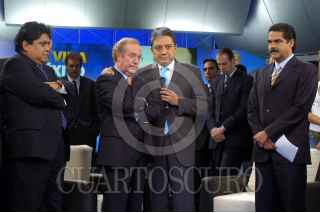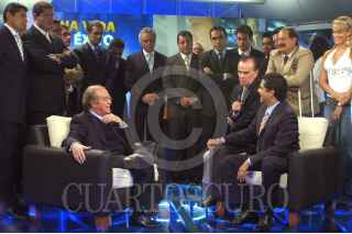 MEXICO, D.F., 07SEPTIEMBRE2006.- Ayer por la noche Jose Ramón Fernández, líder de los noticierons deportivos de TV Azteca, se despidió de su cargo por problemas de salud. En un programa especial acompañado de la mayoría de sus colaboradores se despidió de los televidentes esperando regresar muy pronto, el cronista deportivo estuvo más de tres decadas al frente de los programas deportivos Deporte TV, En Caliente y actualmente Los Protagonistas. FOTO: TVAZTECA/CUARTOSCURO.COM
