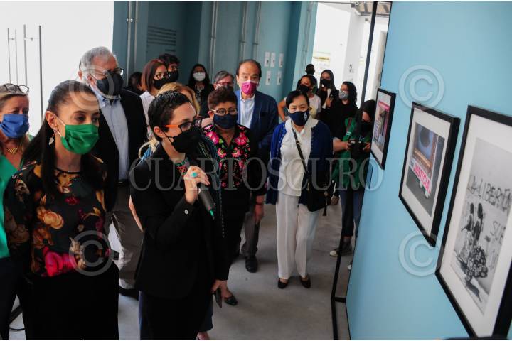 CIUDAD DE MÉXICO, 10JUNIO2021.- Como parte de la conmemoración del 50 aniversario del Halconazo, Claudia Sheinbaum, jefa de gobierno de la capital, en compañía de Beatriz Gutiérrez Muller, coordinadora nacional de Memoria Histórica, Ernestina Godoy, fiscal general de la Ciudad de México y Alejandro Encinas, subsecretario de Derechos Humanos en Segob, inauguraron la exposición Memorias Insurrectas, un compendio de fotografías y documentos que muestran parte de este hecho Histórico. FOTO: DANIEL AUGUSTO /CUARTOSCURO.COM