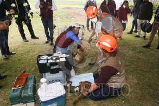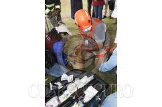 SANTA MARÍA, ZACATEPEC, 10JUNIO2021.- "Spay" y "Spike" dos canes que cayeron desde el pasado lunes al mega socavón formado en la entidad fueron rescatados por elementos de Protección Civil. Los perros han sido valorados para su atención médica por parte médicos del Instituto del Bienestar Animal (IBA). FOTO: PROTECCIÓN CIVIL PUEBLA/CUARTOSCURO. COM