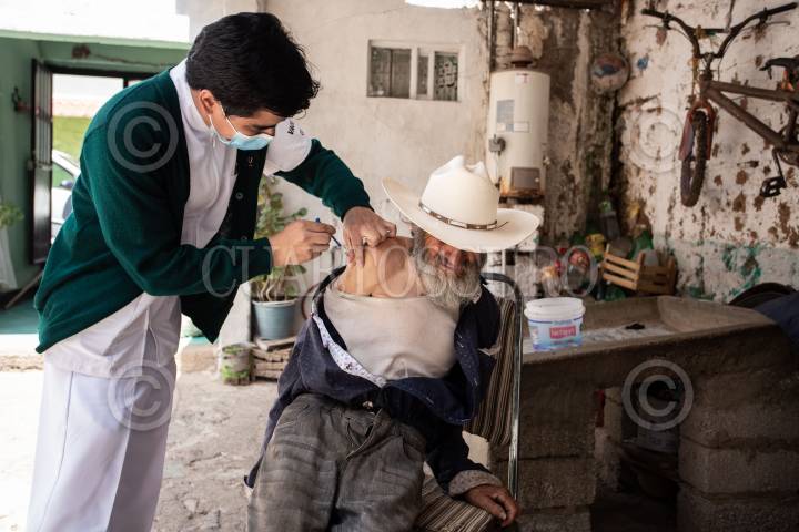 MORELOS, ZACATECAS, 10JUNIO2021.- Como parte de la Jornada Nacional de Vacunación la Brigada Correcaminos inmunizó a 8 personas de tres comunidades diferentes, los cuales no pudieron acudir al módulo de vacunación por su condición de salud. Durante el recorrido fueron acompañados por elementos del Ejército Mexicano para prever cualquier incidente de seguridad. En el municipio se instaló el módulo de vacunación en el Colegio de Bachilleres y fueron inmunizadas al rededor de mil 400 personas. FOTO: ADOLFO VLADIMIR /CUARTOSCURO.COM