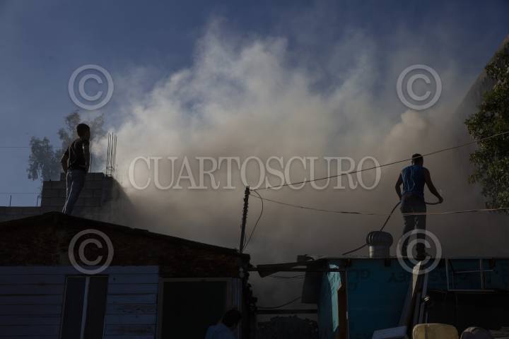 TIJUANA, BAJA CALIFORNIA, 10JUNIO2021.- Fuerte incendio consumió una casa de dos pisos ubicada en la calle Pirul de la colonia Las Torres Parte Baja. Vecinos de la zona utilizaron mangueras y baldes de agua para tratar de sofocar del fuego, al momento que personal de bomberos arribaba al lugar para apoyarlos. No se reportan personas lesionadas. FOTO: OMAR MARTÍNEZ /CUARTOSCURO.COM