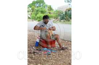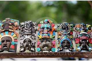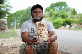 YOKDZONOT, YUCATÁN, 11JUNIO2021.- Un artesano de la comunidad de Yokdzonot trabaja en sus máscaras mayas, talladas a mano, para mantener a su familia a pesar de las bajas ventas por la falta de turistas. FOTO: FRANCISCO BALDERAS/CUARTOSCURO.COM