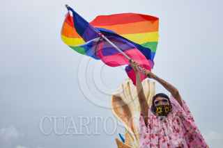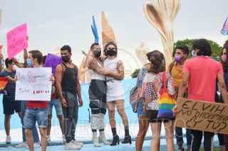 CANCÚN, QUINTANA ROO, 11JUNIO2021.- Personas de la comunidad LGBT en protesta por el reciente asesinato de odio en agravio de un joven que fue quemado la semana pasada en Cancún en un taller de herrería de la Región 231 durante una fiesta en la que reveló ser portador VIH seropositivo. Los manifestantes se reunieron la tarde de este viernes para pedir a las autoridades mayor seguridad para miembros de la comunidad, que constantemente son víctimas de odio. FOTO: ELIZABETH RUIZ /CUARTOSCURO.COM