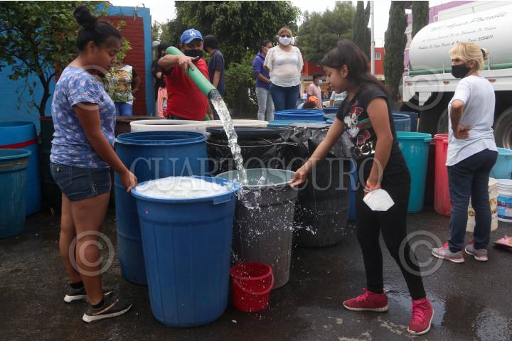 CIUDAD DE MÉXICO, 12JUNIO2021.- Trabajadores de pipas de agua llenaron botes con el vital líquido a vecinos de la Unidad Habitacional Minas Polvorilla Acapatzingo, colonia Minas Polvorilla, en la alcaldía Iztapalapa. Alrededor de 5000 habitantes viven en la unidad, en la que hay alrededor de 700 viviendas entre departamentos y casas. Debido al corte de agua potable por las obras realizadas en Cutzamala, hoy acudieron 16 pipas de 20 y 10 litros para abastecer del vital líquido a esta Unidad Habitacional. FOTO: GRACIELA LÓPEZ /CUARTOSCURO.COM
