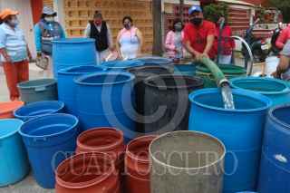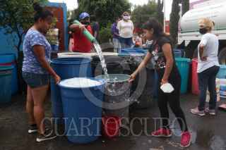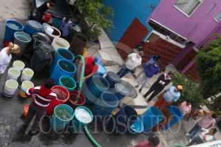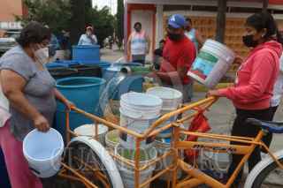 CIUDAD DE MÉXICO, 12JUNIO2021.- Trabajadores de pipas de agua llenaron botes con el vital líquido a vecinos de la Unidad Habitacional Minas Polvorilla Acapatzingo, colonia Minas Polvorilla, en la alcaldía Iztapalapa. Alrededor de 5000 habitantes viven en la unidad, en la que hay alrededor de 700 viviendas entre departamentos y casas. Debido al corte de agua potable por las obras realizadas en Cutzamala, hoy acudieron 16 pipas de 20 y 10 litros para abastecer del vital líquido a esta Unidad Habitacional. FOTO: GRACIELA LÓPEZ /CUARTOSCURO.COM