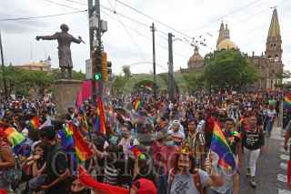 GUADALAJARA, JALISCO, 12JUNIO2021.- Miles de personas de la comunidad LGBT, participaron en una edición mas de la Marcha del Orgullo Gay 2021, ya mencionado evento comenzó en las inmediaciones de la Glorieta Minerva y concluyo en la Plaza de la Liberación en el centro histórico de la ciudad. FOTO: FERNANDO CARRANZA GARCIA / CUARTOSCURO.COM