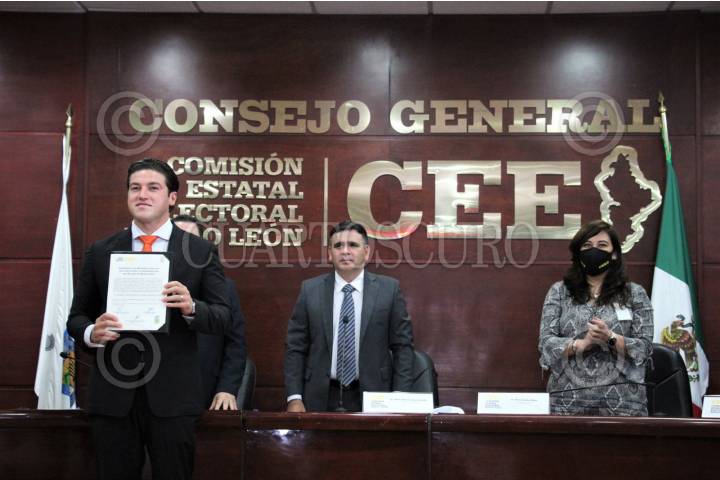 MONTERREY, NUEVO LEÓN, 13JUNIO2021.- Samuel García Sepúlveda, candidato electo a la gubernatura de Nuevo León, acudió a la Comisión Estatal Electoral donde recibió su constancia que lo avala como gobernador, acompañado de su esposa Mariana Rodríguez. FOTO: CUARTOSCURO.COM