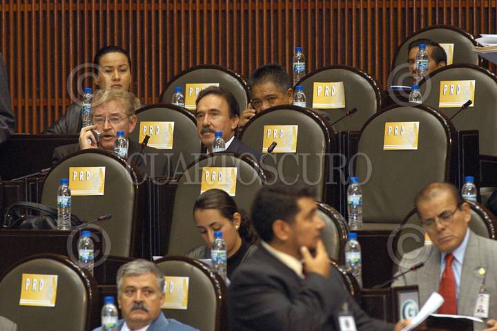 MÉXICO D.F. 07SEPTIEMBRE2006.- El diputado, Laida Sanzores y Alejandro Chanona, coordinador de la bancada de Convergencia, dialogan con diputados de su bancada, durante al seseón ordinaria en Cámara de Diputados. FOTO: GUILLERMO PEREA/CUARTOSCURO.COM