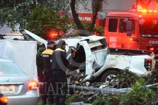 CIUDAD DE MÉXICO, 14JUNIO2021.- Tres presuntos elementos de la FGR perdieron la vida al impactar la camioneta donde viajaban contra un árbol y un poste, cuando circulaba por carriles centrales de Viaducto, a la altura de Dr. Barragán, en la colonia Atenor Salas, en la Alcaldía Benito Juarez. FOTO: CRISTIAN HERNÁNDEZ/CUARTOSCURO.COM