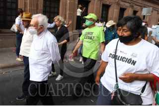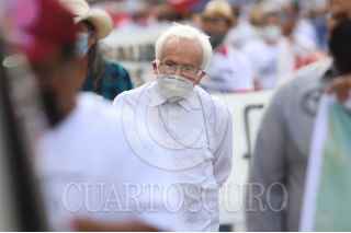 SALTILLO, COAHUILA, 14JUNIO2021.- Cerca de 300 personas marcharon por el primer cuadro de la ciudad para exigir se respeten los derechos humanos, laborales y sociales, además de familiares que buscan a sus seres queridos desaparecidos. El Obispo Emérito Raúl Vera López acompaño al contingente. FOTO: ALEJANDRO RODRÍGUEZ/CUARTOSCURO.COM