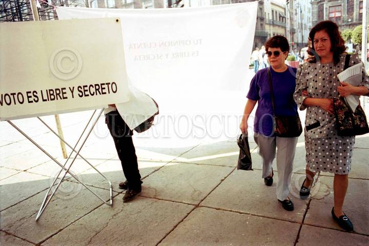 Policias auxiliares de la ciudad de México continuan participando en la consulta para elegir representantes en un encuentro de superiores en proximos dias. Ramón Sosamontes realizo una visita a la casilla que se encuentra en el Zócalo de la capital Mexicana. FOTO: Victoria Valtierra/CUARTOSCURO.COM