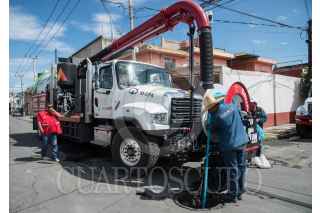 NEZAHUALCÓYOTL, ESTADO DE MÉXICO, 15JUNIO2021.- Trabajadores del Grupo Tláloc realizaron limpieza de drenajes en las calles de la colonia Ampliación Las Américas luego de que en los últimos días se registraran inundaciones en dicha colonia. FOTO: MARIO JASSO/CUARTOSCURO.COM