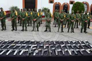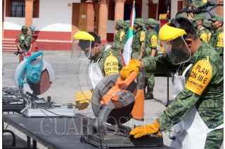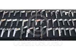 CUERNAVACA, MORELOS, 15JUNIO2021.- En una ceremonia oficial llevada a cabo en la 24 Zona Militar presidida por el General de Brigada Diplomado de Estado Mayor Agustín Vallejo Silva, comandante de la 24/a Zona Militar, el comisionado de Seguridad Publica, José Antonio Ortiz Guarneros y el fiscal de justicia Uriel Carmona, se destruyeron 194 armas, 129 cortas, 65 largas, 165 cargadores, mil 703 cartuchos, 265 cascos y 201 ojivas. FOTO: MARGARITO PÉREZ RETANA /CUARTOSCURO.COM