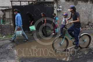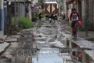 CIUDAD DE MÉXICO 15JUNIO2021.- Calles y avenidas del Pueblo de San Luis Tlaxialtemalco en la alcaldía Xochimilco se encuentran totalmente destruidas y en algunos puntos aún repletas de agua en los baches que se formaron. Dichas afectaciones se derivan de las intensas lluvias registradas en días pasados en la ciudad. FOTO: ROGELIO MORALES /CUARTOSCURO.COM