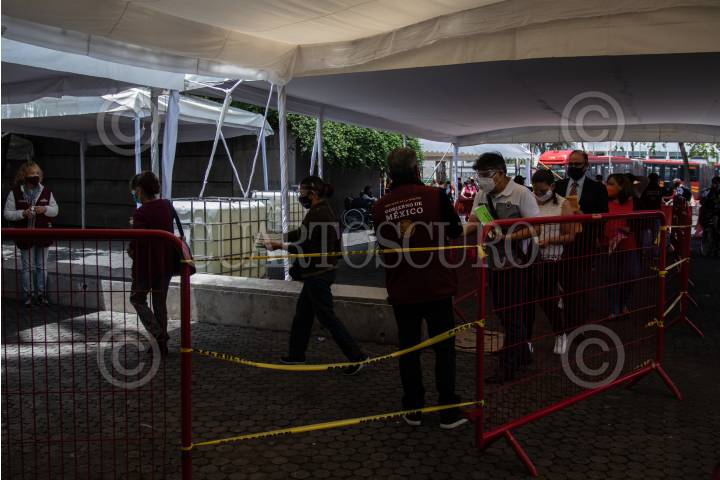 CIUDAD DE MÉXICO, 15JUNIO2021.- Comenzó la jornada de vacunación contra COVID-19 en su segunda dosis para las personas de 50 a 59 años de la alcaldía Cuauhtémoc. Concluirá el sábado 19 de junio, se les proporcionará el esquema completo de la vacuna Pfizer-BioNTech. En este lapso se planea vacunar a 69 mil 852 personas. FOTO: ANDREA MURCIA /CUARTOSCURO.COM