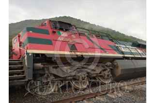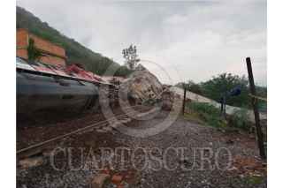 TALA, JALISCO, 15JUNIO2021.- Un tren se descarriló en el poblado de San Isidro Mazatepec dejando una persona muerta y tres personas lesionadas. En el percance también resultaron afectados cuatro viviendas. La unidad transportaba granos de canola y contaba con 108 vagones. La víctima mortal se llamaba Pablo de aproximadamente 66 años y murió tras desplomarse su casa de dos pisos por el impacto del tren. FOTO: CUARTOSCURO.COM