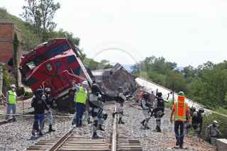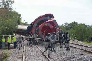 TALA, JALISCO, 15JUNIO2021.- Esta madrugada dos locomotoras y 12 unidades de carga ferroviaria de Ferromex que transportaban grano de canola, descarrilaron en el poblado de San Isidro Mazatepec, dejando como saldo una persona fallecida, 3 personas lesionadas y cuatro viviendas con daños estructurales dos de ellas en su totalidad. FOTO: FERNANDO CARANZA GARCIA / CUARTOSCURO.COM