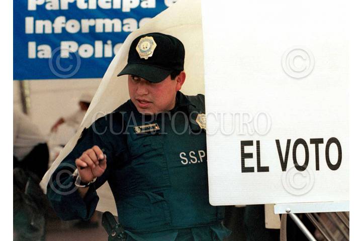 Policias auxiliares de la ciudad de México continuan participando en la consulta para elegir representantes en un encuentro de superiores en proximos dias. Ramón Sosamontes realizo una visita a la casilla que se encuentra en el Zócalo de la capital Mexicana. FOTO: Victoria Valtierra/CUARTOSCURO.COM