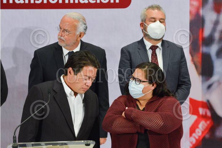 CIUDAD DE MÉXICO, 16JUNIO2021.- Mario Delgado, dirigente nacional de Morena, durante la conferencia posterior al encuentro con gobernadores electos del partido durante las pasadas elecciones: Marina del Pilar, Baja California; Víctor Castro Cosío, Baja California Sur; Indira Vizcaíno, Colima; Evelyn Salgado, Guerrero; Alfredo Ramírez Bedolla, Michoacán; Miguel Ángel Navarro, Nayarit; Rubén Rocha, Sinaloa; Alfonso Durazo, Sonora; Lorena Cuéllar, Tlaxcala y David Monreal, Zacatecas. FOTO: MARIO JASSO/CUARTOSCURO.COM