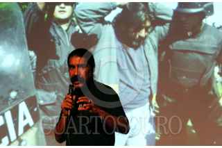 XALAPA, VERACRUZ 08SEPTIEMBRE2006.- Jesús Villaseca, reportero gráfico del periodico La Jornada, ofreció una conferencia en la facultad de Humanidades donde habló sobre el conflicto de Atenco y mostró imágenes que tomó a lo largo de un año desde el lavantamiento de los campesinos por defender sus tierras hasta el enfrentamiento con policías federales y municipales los días 3 y 4 de mayo. FOTO: Carlos Tischler/CUARTOSCURO.COM