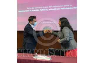 CIUDAD DE MÉXICO, 17JUNIO2021.- Eréndira Sandoval Ballesteros, secretaria de la función pública firmó con Arturo Reyes Sandoval, director general del Instituto Politécnico Nacional (IPN), un convenio de colaboración entre ambas instituciones para la realización de proyectos de profesionalización del servicio público, que permitan captar, retener y desarrollar el talento de las personas servidoras públicas. FOTO: CUARTOSCURO.COM