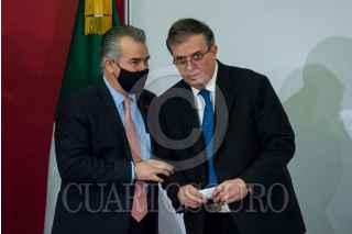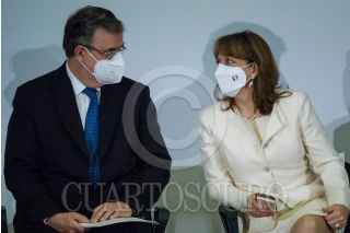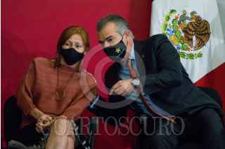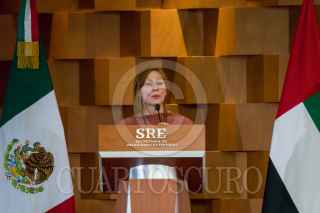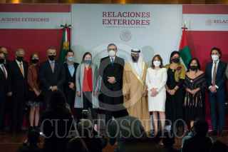 CIUDAD DE MÉXICO, 17JUNIO2021.- Marcelo Ebrard, secretario de Relaciones Exteriores; Miguel Torruco, secretario de Turismo; Tatiana Clouthier, secretaria de Economía; Martha Delgado Peralta, subsecretaria para Asuntos Multilaterales y Derechos Humanos de la Secretaría de Relaciones Exteriores (SRE); Alejandra Fraustro Guerrero, secretaria de Cultura; Francisco Cervantes Díaz, presidente de la Confederación de Cámaras Industriales, y Ahmed Almenhali, embajador de Emiratos Árabes Unidos en México. encabezaron la presentación de lo que será el Pabellón de México en la Expo 2020 Dubai, próxima a celebrarse del 01 de octubre 2021 al 31 de marzo de 2022. La muestra busca la promoción de nuestro país a fin de reactivar sectores que por la pandemia tuvieron que parar. FOTO: GALO CAÑAS/CUARTOSCURO.COM