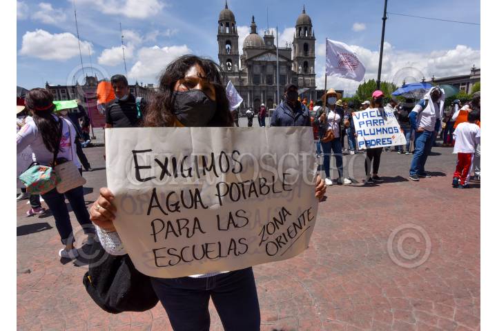 TOLUCA, ESTADO DE MÉXICO, 17JUNIO2021.- Integrantes de la Coordinadora de Escuelas Democráticas en el Estado de México CEDEM se manifestaron frente a Palacio de Gobierno para exigir un retorno a clases seguro para estudiantes, padres de familia y maestros, servicios básicos en las escuelas, como agua potable, luz, drenaje, y consideraron una burla el material para sanitizar que fue entregado por parte de Gobierno del Estado. FOTO: CRISANTA ESPINOSA AGUILAR /CUARTOSCURO.COM