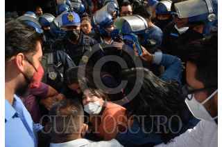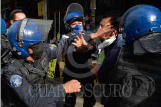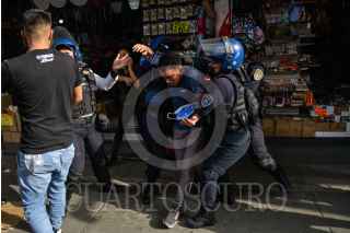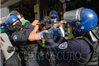CIUDAD DE MÉXICO, 17JUNIO2021.- Elementos de la Secretaría de Seguridad Ciudadana (SSC) y personal del Gobierno Capitalino realizaron un operativo en las inmediaciones la avenida Izazaga y Pino Suárez para retirar comercio ambulante que permanecía en la vía pública después de las 18 horas. En el lugar hubo un enfrentamiento entre policías y comerciantes para que su mercancía no fuera confiscada. FOTO: MARIO JASSO/CUARTOSCURO.COM