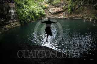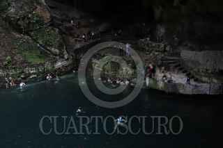 VALLADOLID, YUCATÁN, 17JUNIO2021.- Aspectos de turistas nacionales y extranjeros disfrutando de las aguas del cenote Zací en el municipio de Valladolid. FOTO: MARTÍN ZETINA /CUARTOSCURO.COM